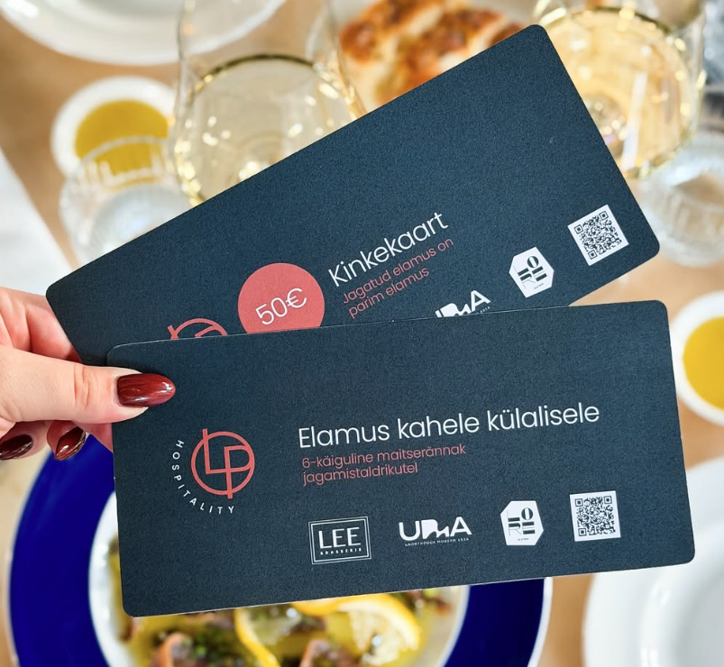 Ühe kinkekaardiga saad nautida maitseid kõigis meie kolmes restoranis – Lore Bistroos, UMA Restoranis ja Lee Brasserie’s –, mis tegutsevad ühiselt LP Hospitality katuse all.